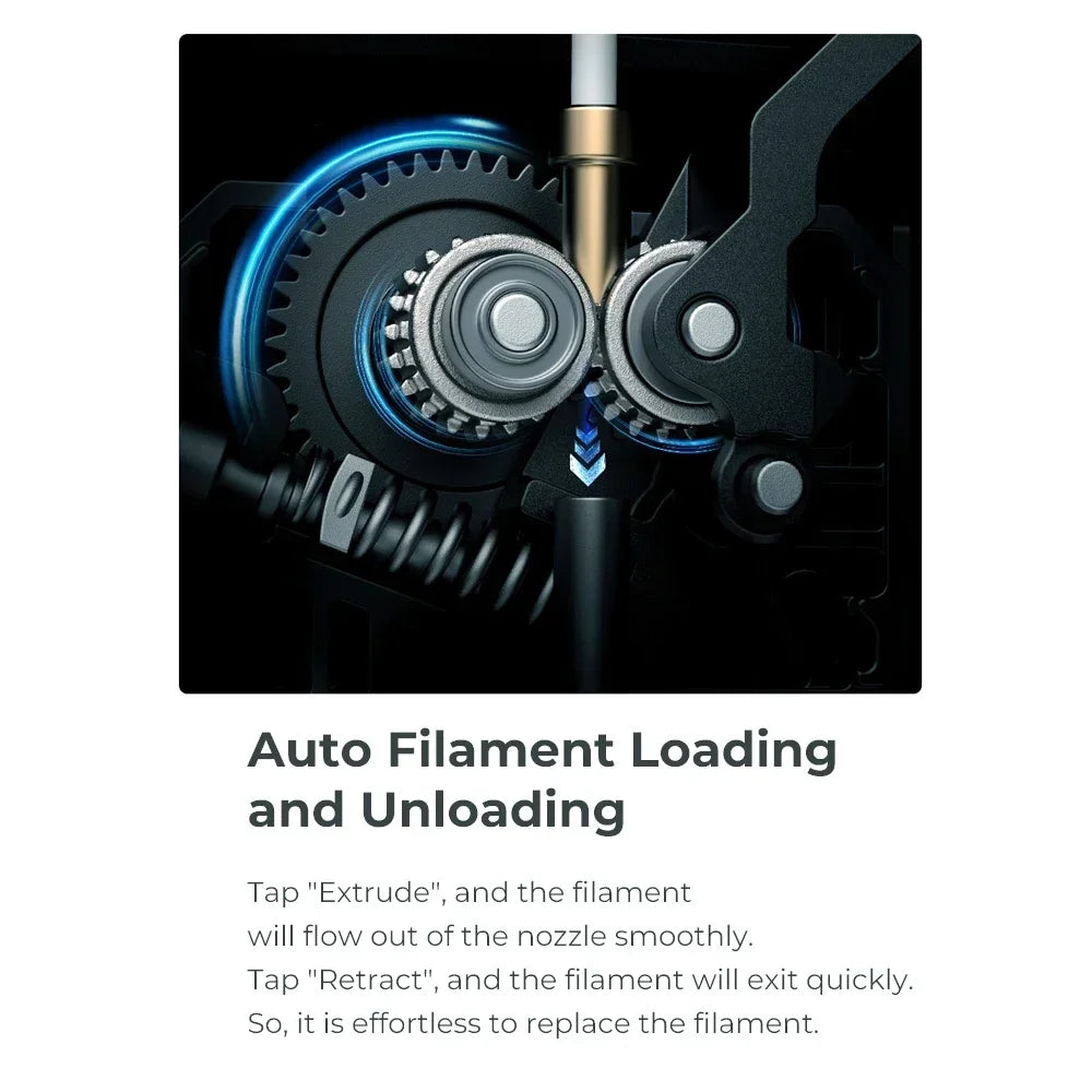 - Pag -load/Pag -load ng Auto Filament: Ang isang-tap na operasyon para sa paglo-load at pag-load ng filament, pinasimple ang proseso at pagbabawas ng downtime.