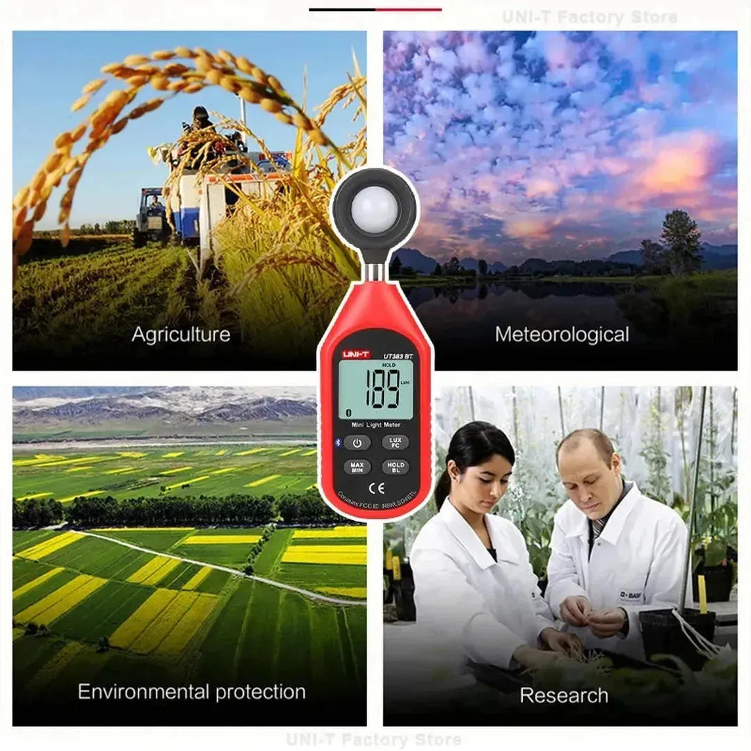 Ang UNI-T UT383 at UT383BT ay mga propesyonal na luxometer na idinisenyo para sa tumpak na pagsukat ng liwanag sa iba't ibang larangan. Nag-aalok ang modelong UT383BT ng karagdagang koneksyon sa Bluetooth para sa paglilipat ng data.